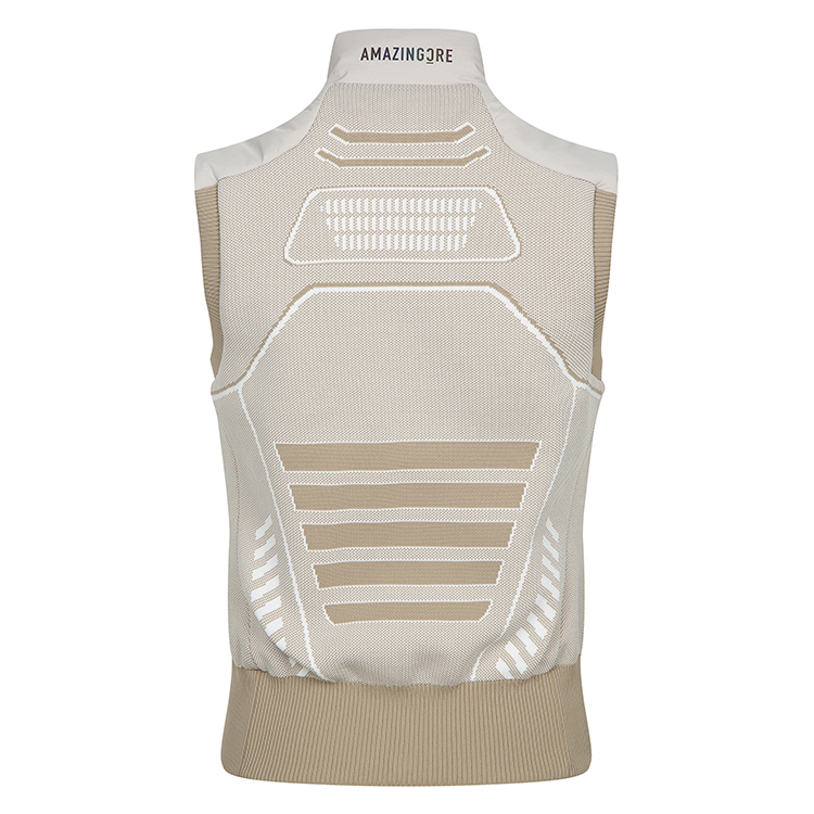 - 스페이스 수트(우주복)에서 영감받은 어메이징크리의 테크니컬 니트 조직 설계.