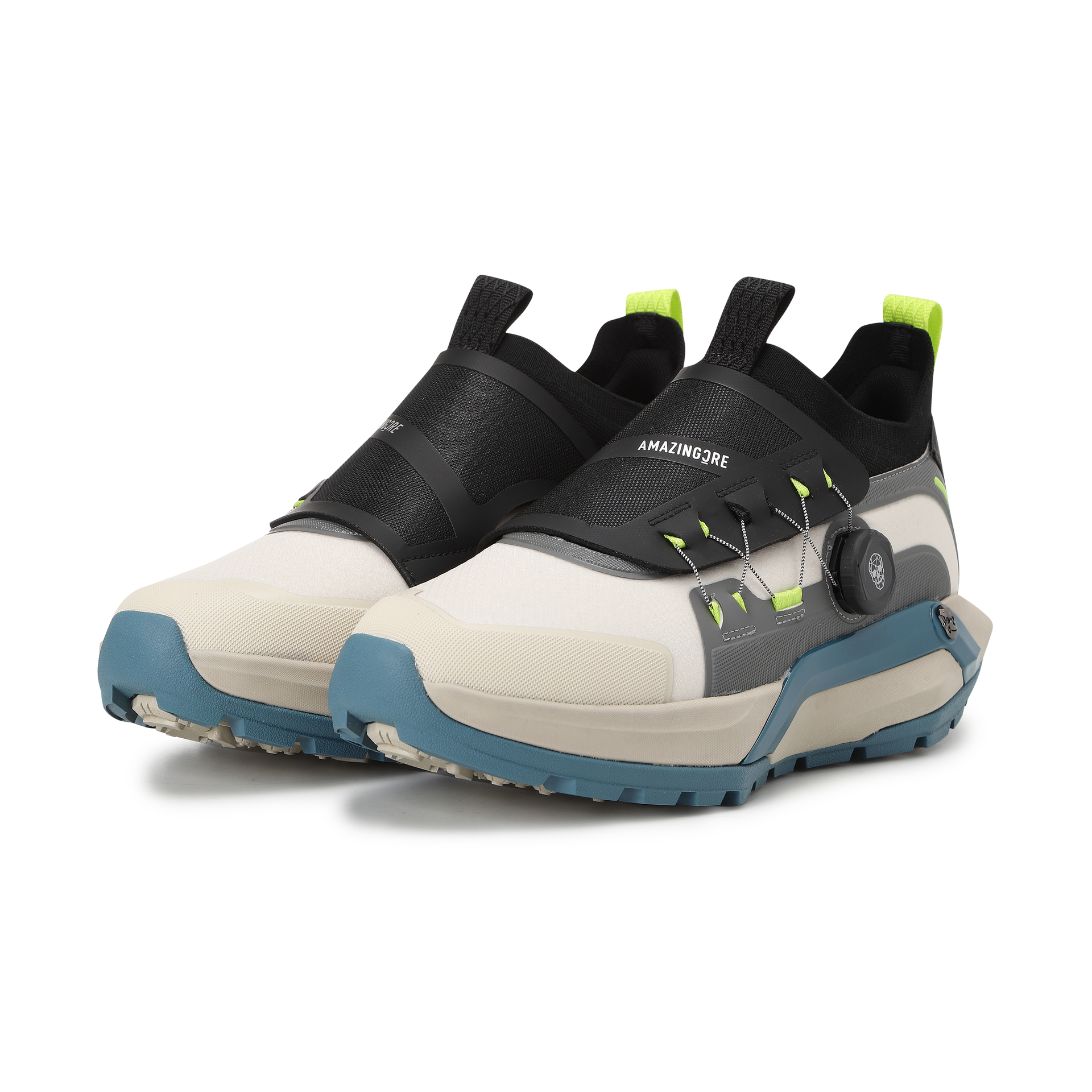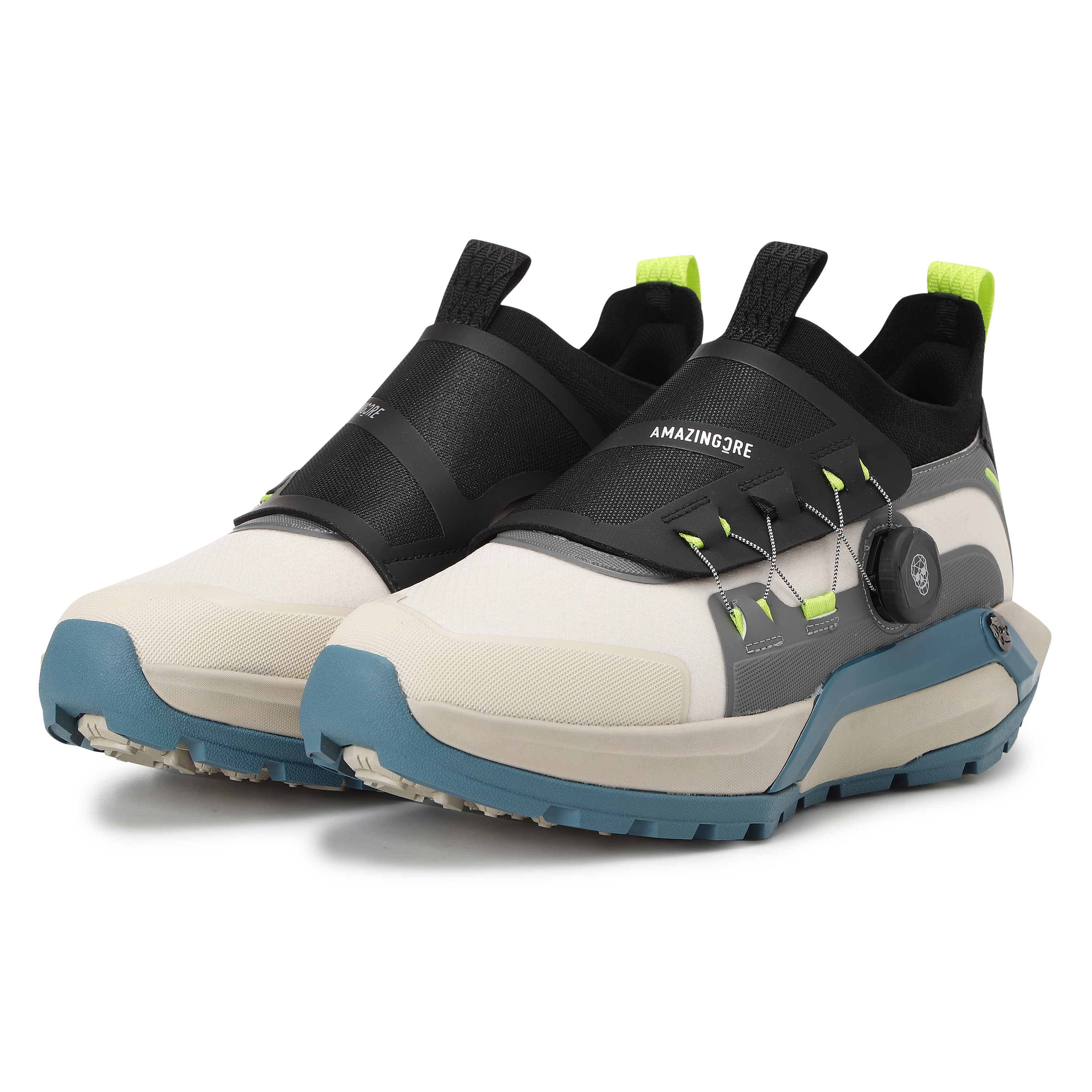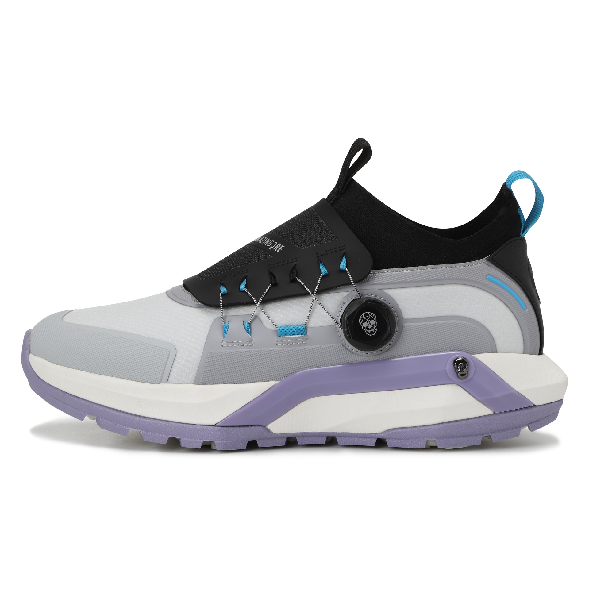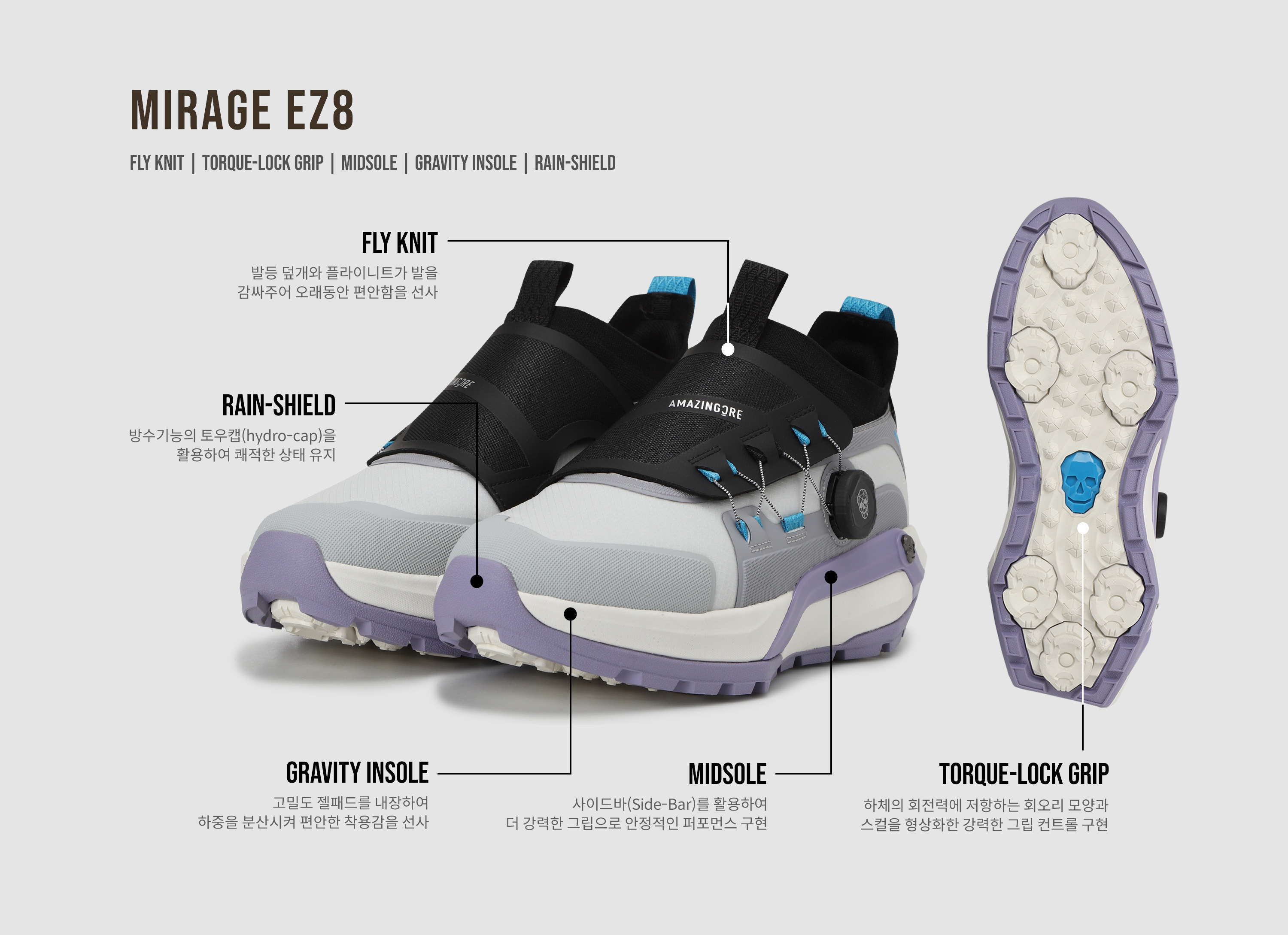 - 아웃솔에는 알렉스 모양의 낮은 스파이크 형태 돌기가 그립력을 향상 시켜주며, 인솔의 고밀도 젤패드가 피로도를 감소 시켜줌