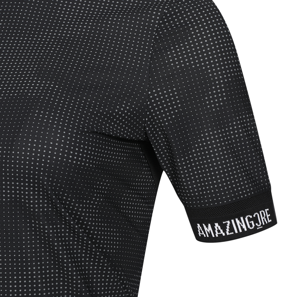 - 기능성 나일론 소재를 사용한 도트카모 알렉스 패턴 하이넥 티셔츠